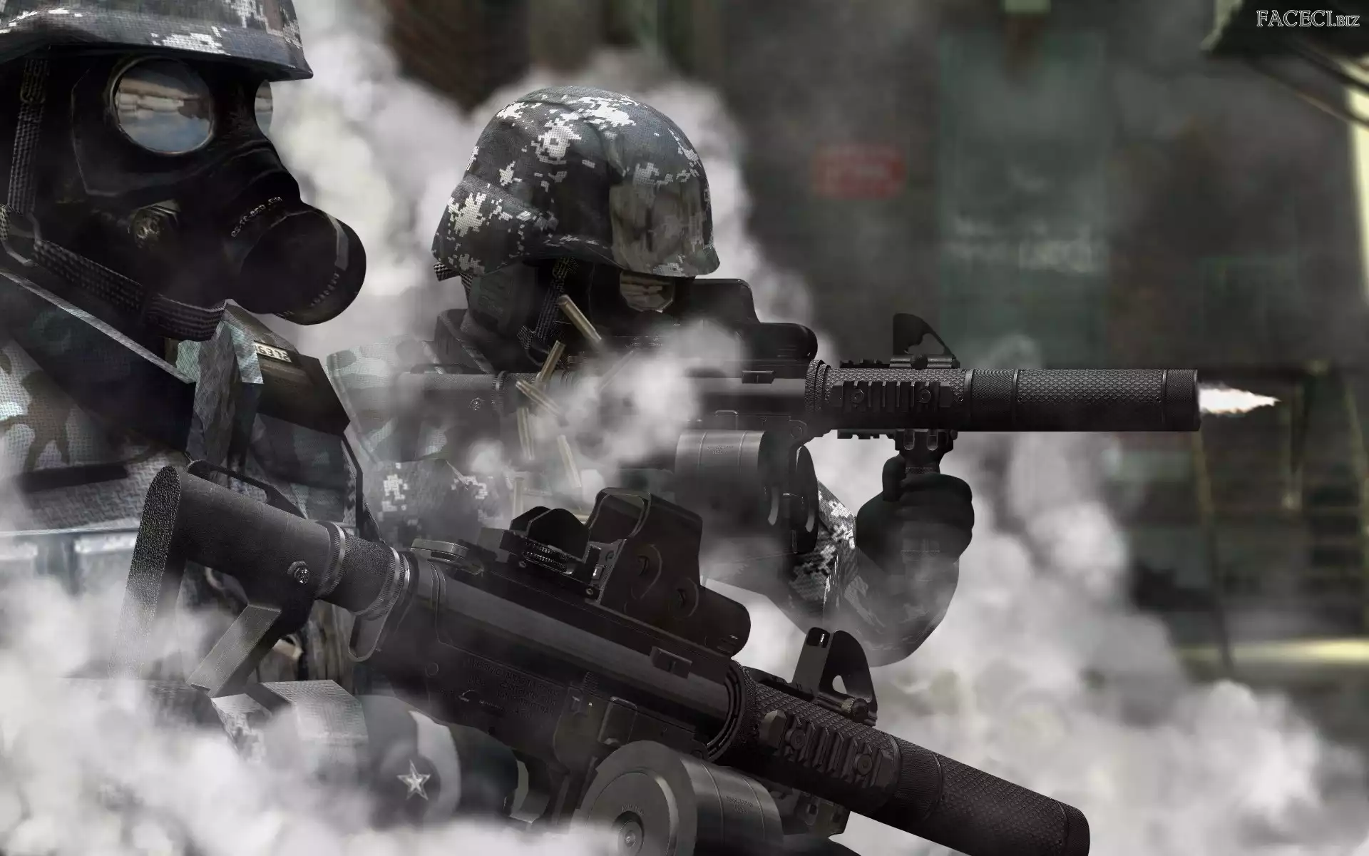 Żołnierze, Dym, Dwaj, Karabiny - faceci.biz