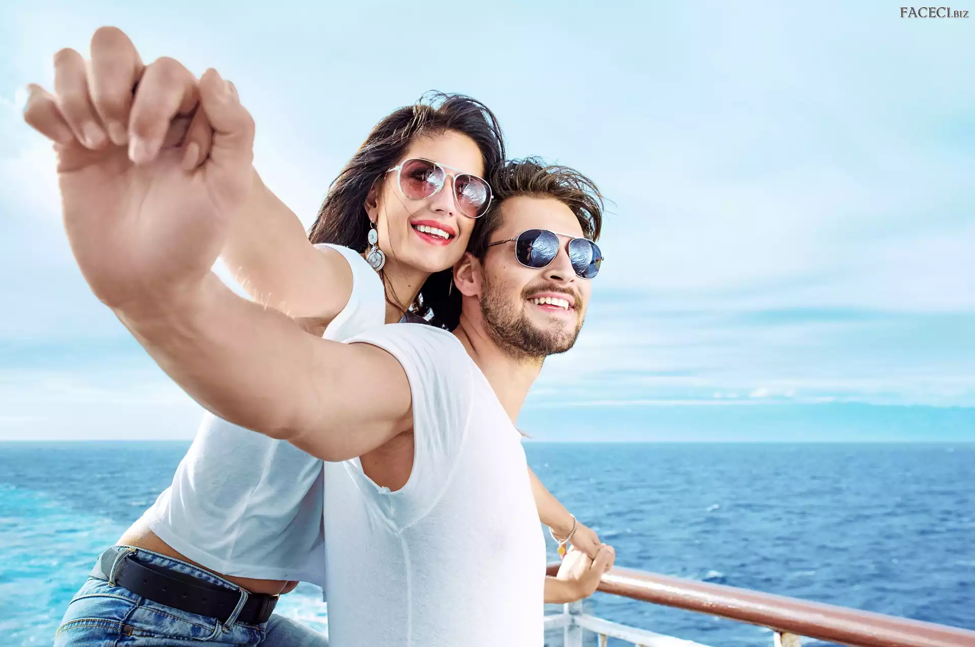 Mężczyzna, Morze, Kobieta, Okulary - faceci.biz